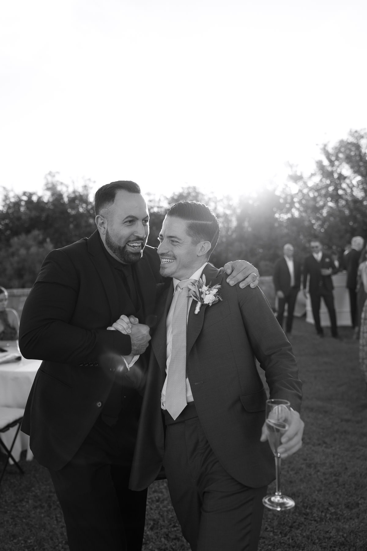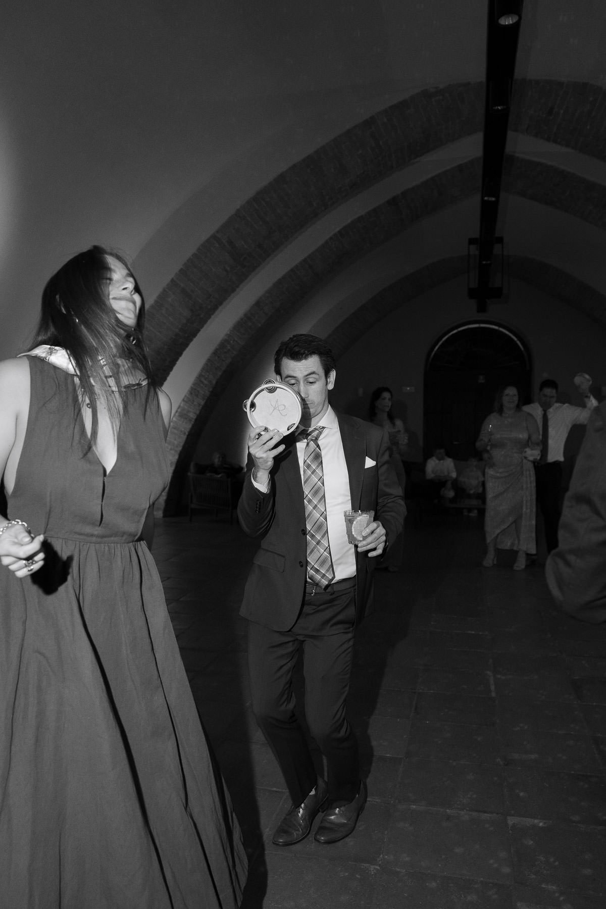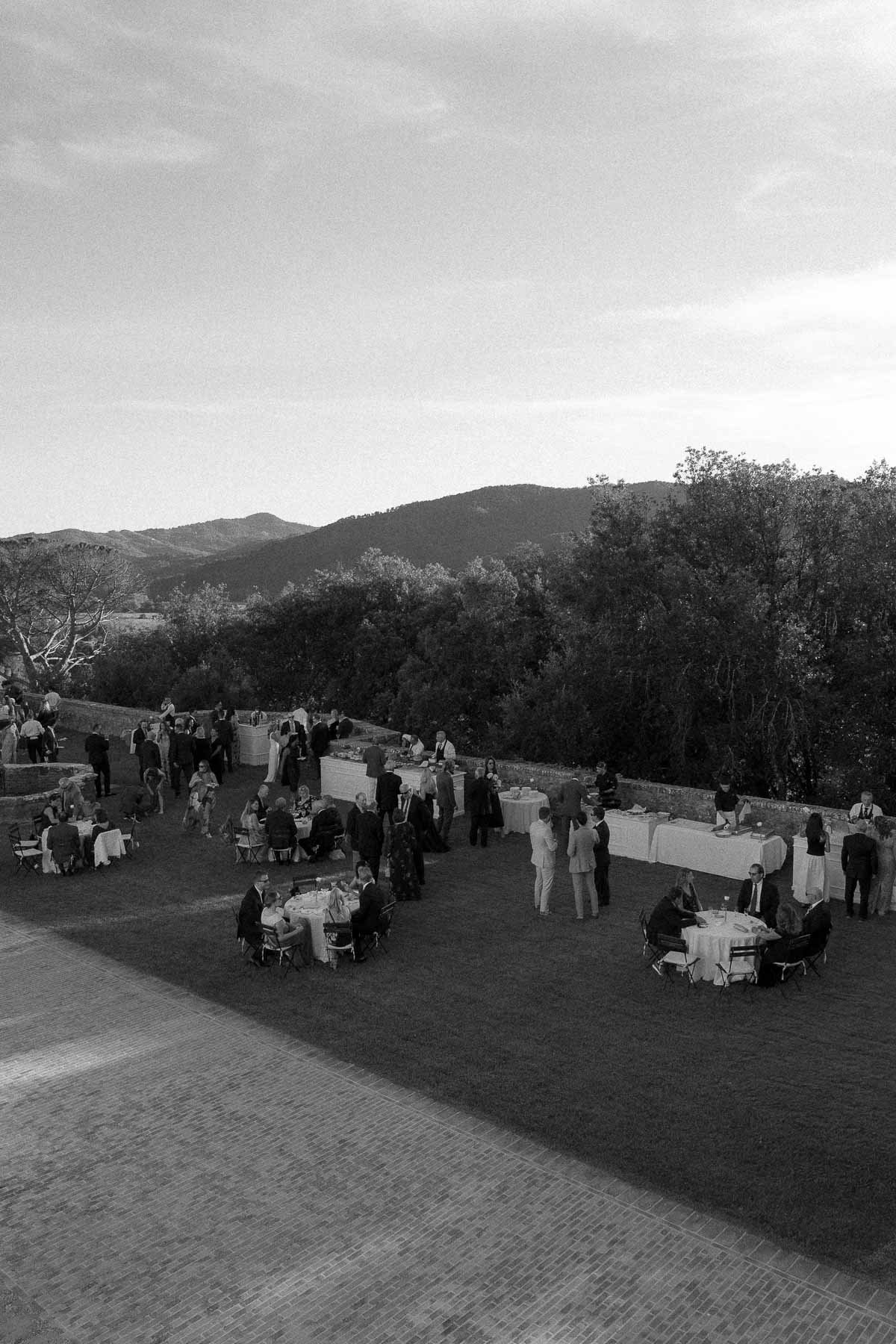 As the ceremony transitioned into aperitivo, the energy of the day expanded rather than dispersed. Guests gathered easily, conversations flowed, and laughter echoed through the open spaces of the castello. No one felt pulled away or rushed. Ali and Adam moved through the celebration together, present with their guests, fully immersed.