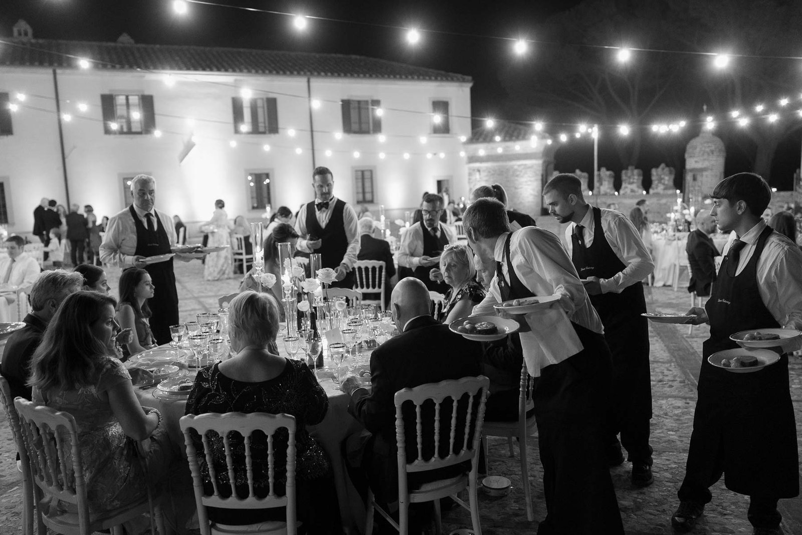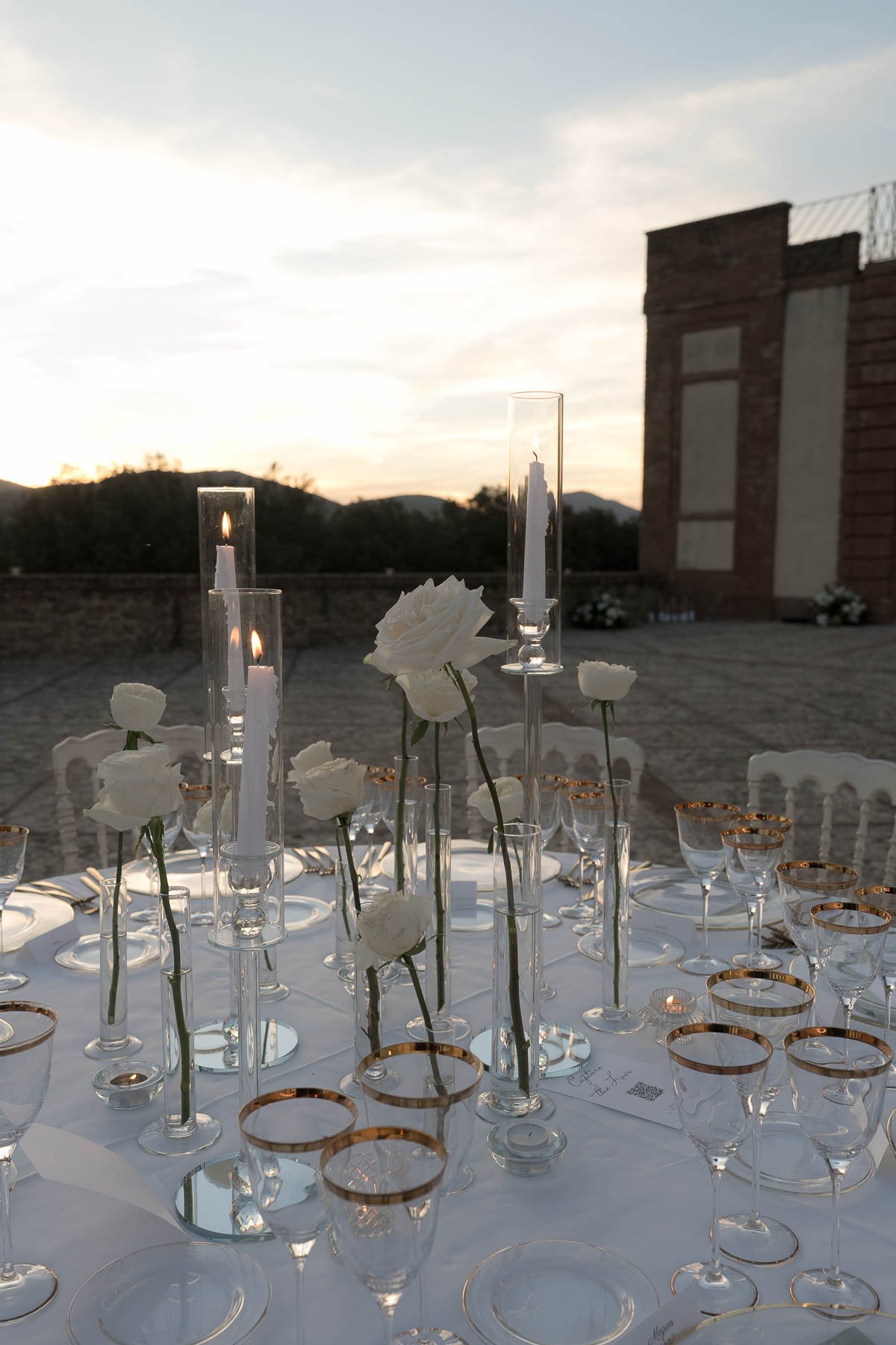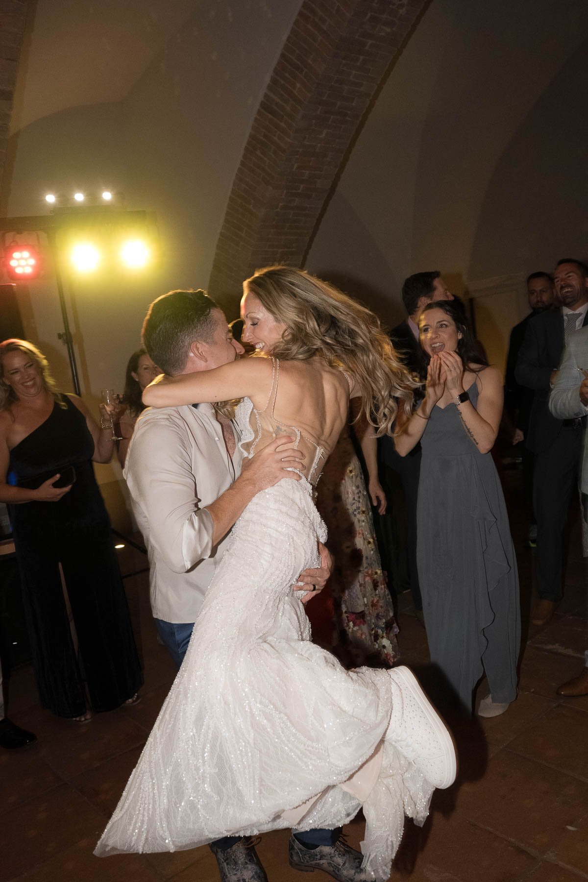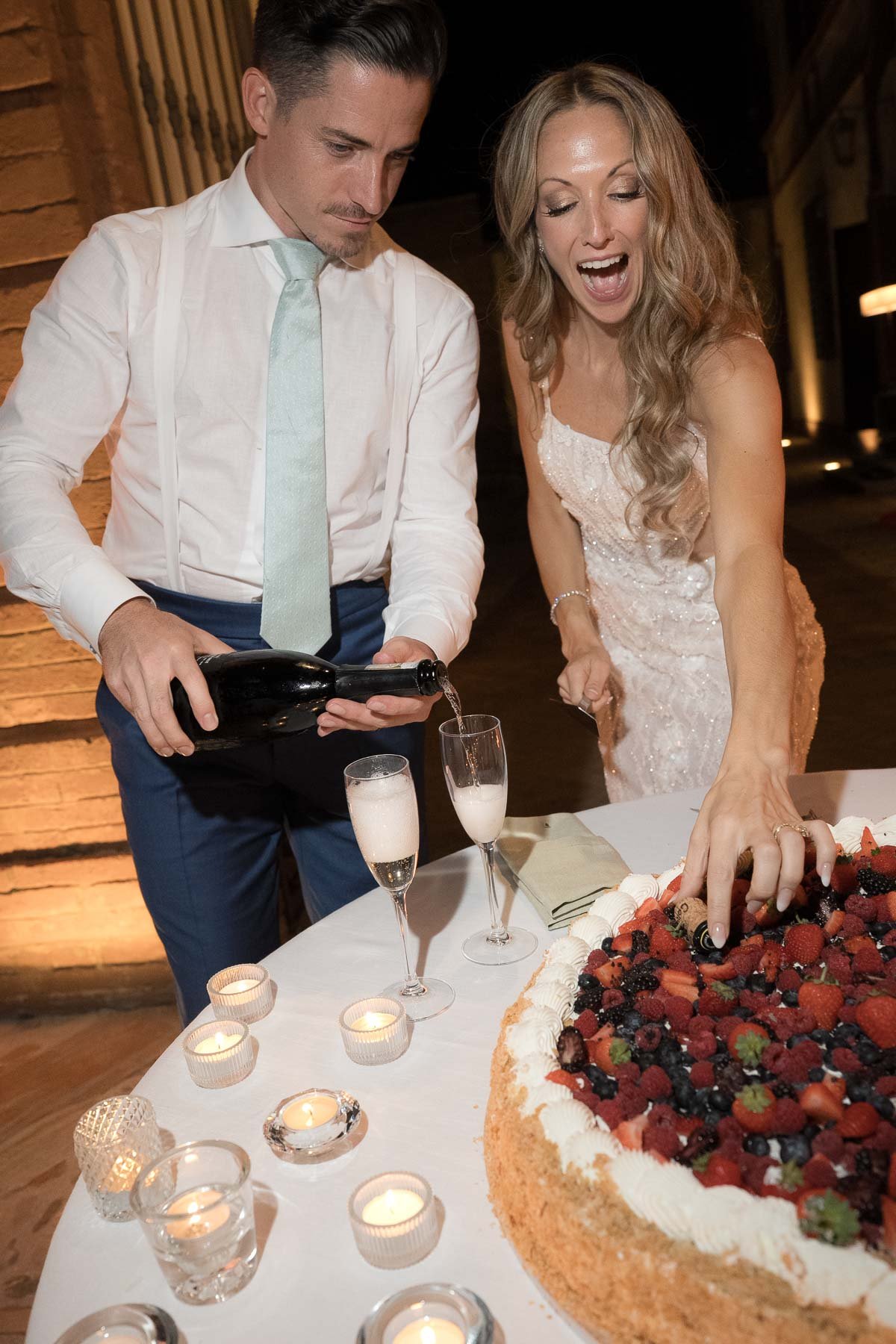 As the ceremony transitioned into aperitivo, the energy of the day expanded rather than dispersed. Guests gathered easily, conversations flowed, and laughter echoed through the open spaces of the castello. No one felt pulled away or rushed. Ali and Adam moved through the celebration together, present with their guests, fully immersed.