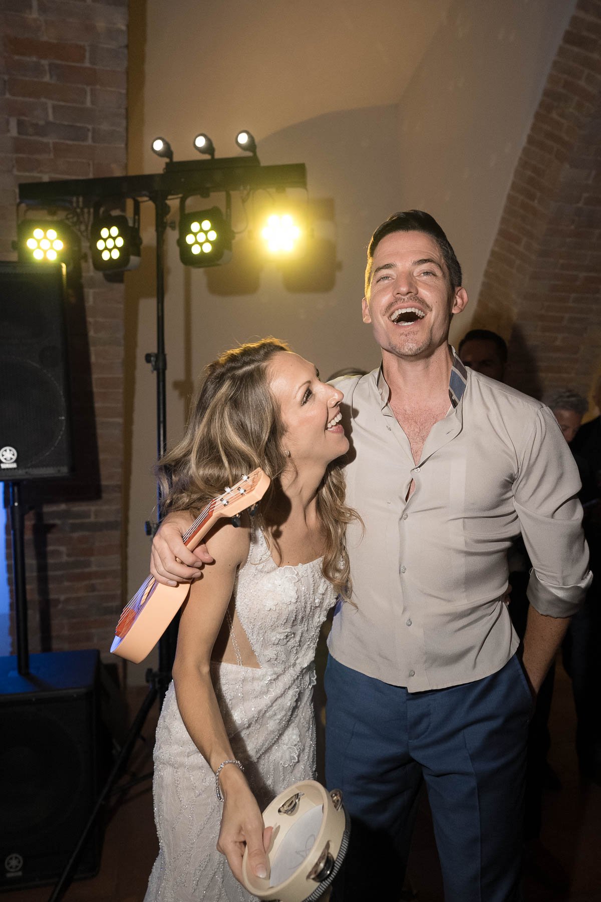 They are an American couple with a naturally joyful energy, and from the very beginning of the day it was clear that this wedding would feel alive. Smiles came easily, laughter filled every space, and their guests were not simply attending the celebration but actively shaping it. Choosing Castello di Solfagnano as their wedding venue allowed the day to unfold without constraints, in a place that encouraged connection rather than formality.
