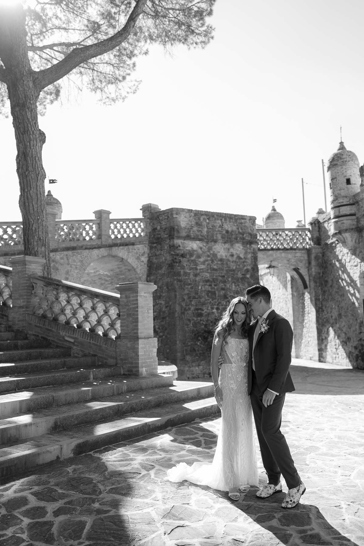Portrait time never felt separate from the rest of the day. It happened quietly, in between moments, as Ali and Adam stepped away together for brief pauses. There was no need for direction or structure. Walking through the grounds of the castello, sharing laughter and quiet conversation, their connection translated effortlessly into images.