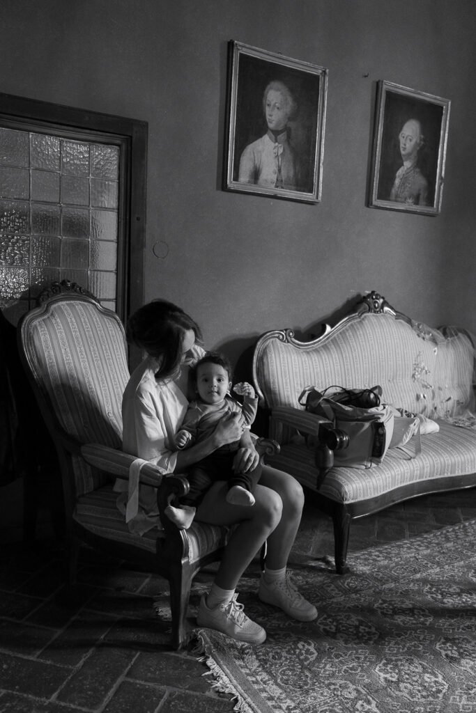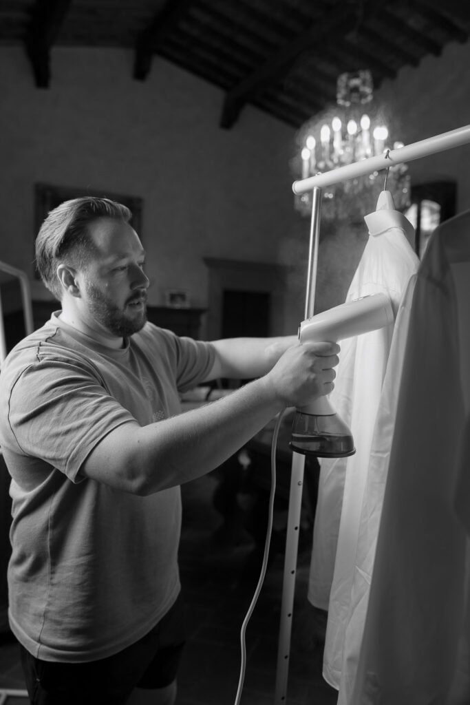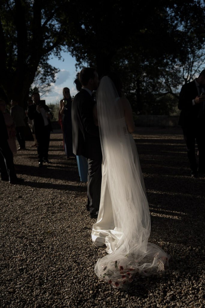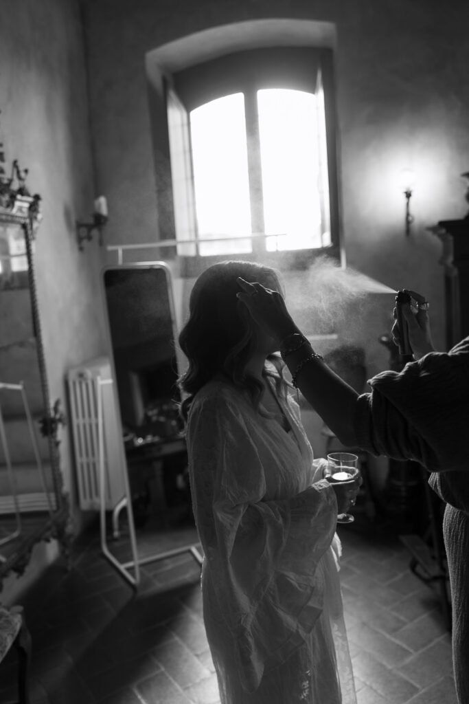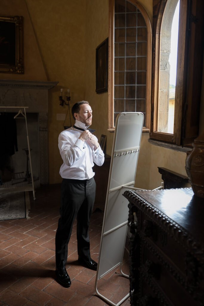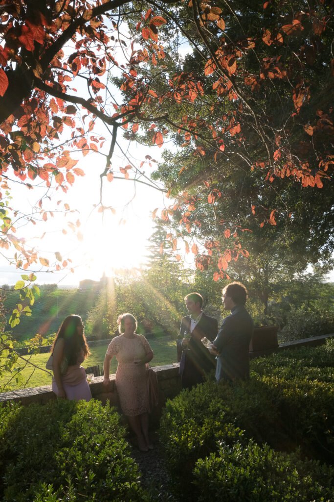 Castello Il Palagio proved to be an ideal location for a civil wedding in Tuscany. The gardens offered privacy, while the historic architecture provided a strong sense of place without overwhelming the event. The Lebanese cedar tree, in particular, became a central part of the story, giving the ceremony a clear focal point and a sense of continuity.