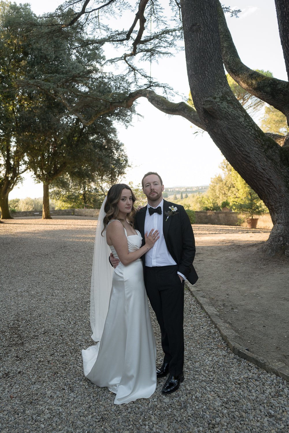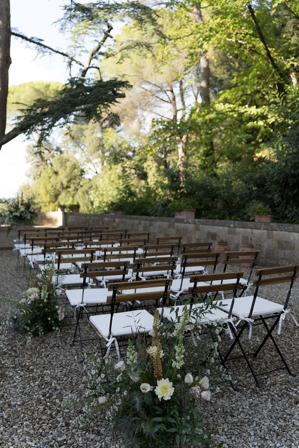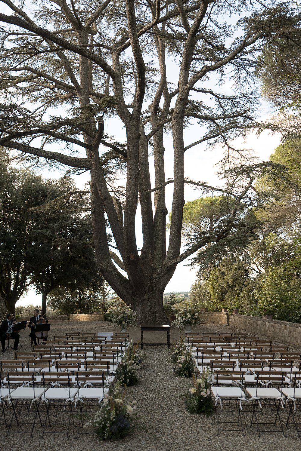 Il Castello Il Palagio si è rivelato una location ideale per una cerimonia civile in Toscana. I giardini garantiscono privacy, mentre l’architettura storica dona un forte senso del luogo senza mai sovrastare l’evento. In particolare, il cedro del Libano è diventato un elemento centrale del racconto, offrendo alla cerimonia un punto focale chiaro e un senso di continuità.