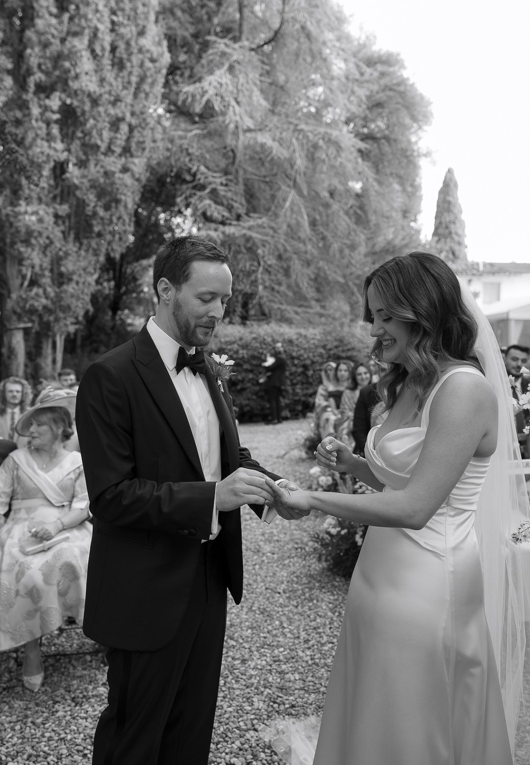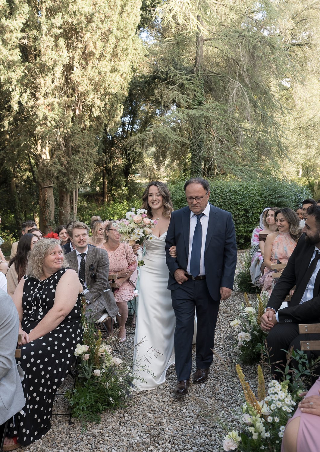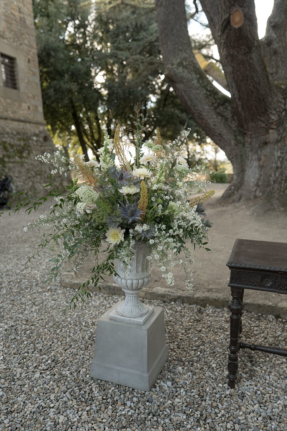 Il Castello Il Palagio si è rivelato una location ideale per una cerimonia civile in Toscana. I giardini garantiscono privacy, mentre l’architettura storica dona un forte senso del luogo senza mai sovrastare l’evento. In particolare, il cedro del Libano è diventato un elemento centrale del racconto, offrendo alla cerimonia un punto focale chiaro e un senso di continuità.