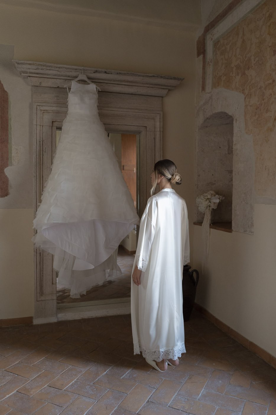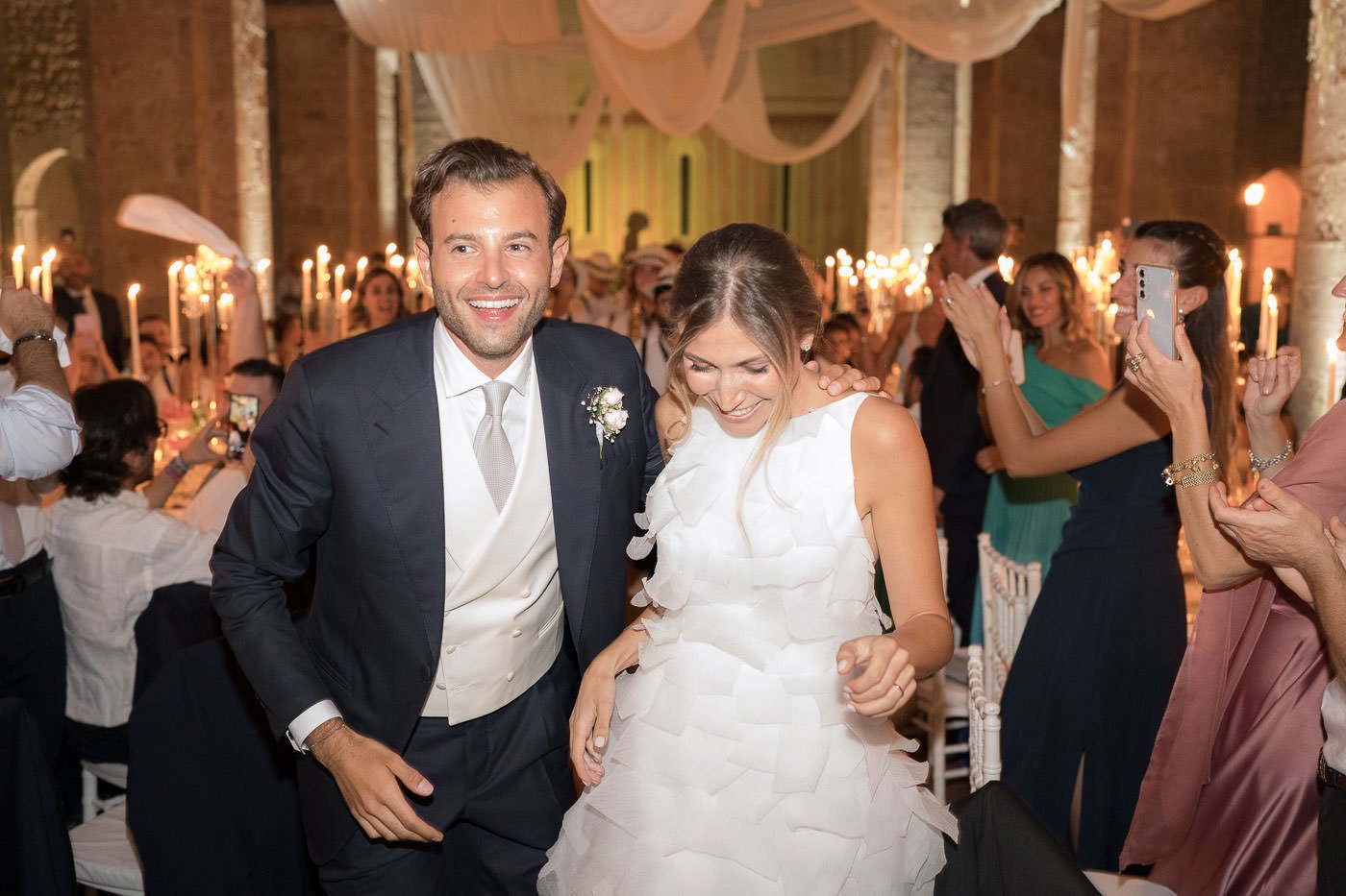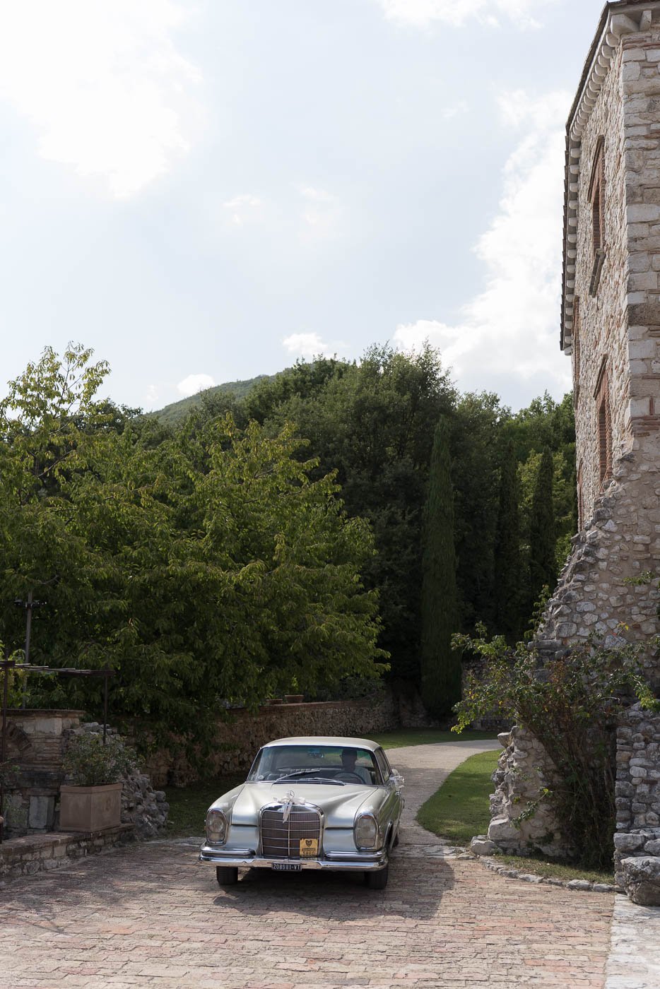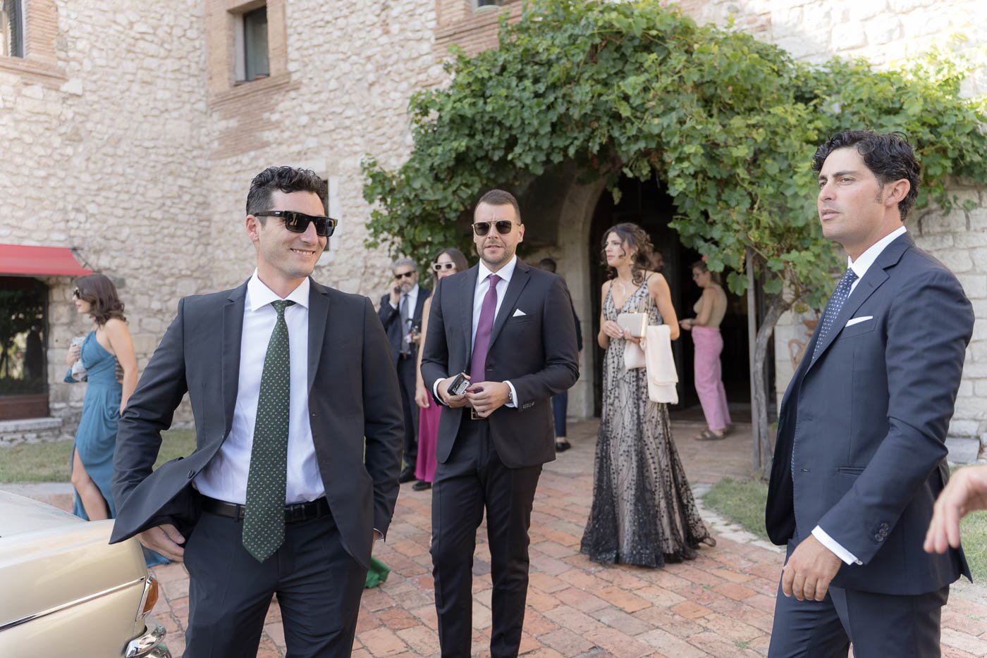 La mattina è iniziata con una cerimonia religiosa in una chiesa non lontana dall’abbazia. È stato un momento sincero e carico di emozione, vissuto insieme a parenti e amici pienamente presenti e partecipi. Si percepiva chiaramente quanto questo passo fosse importante per la coppia, e il supporto delle persone intorno a loro ha definito il tono dell’intera giornata.
