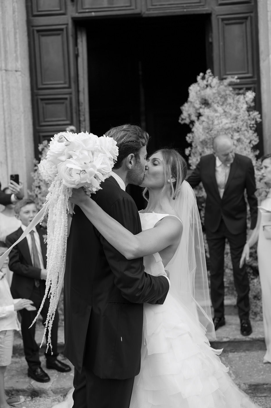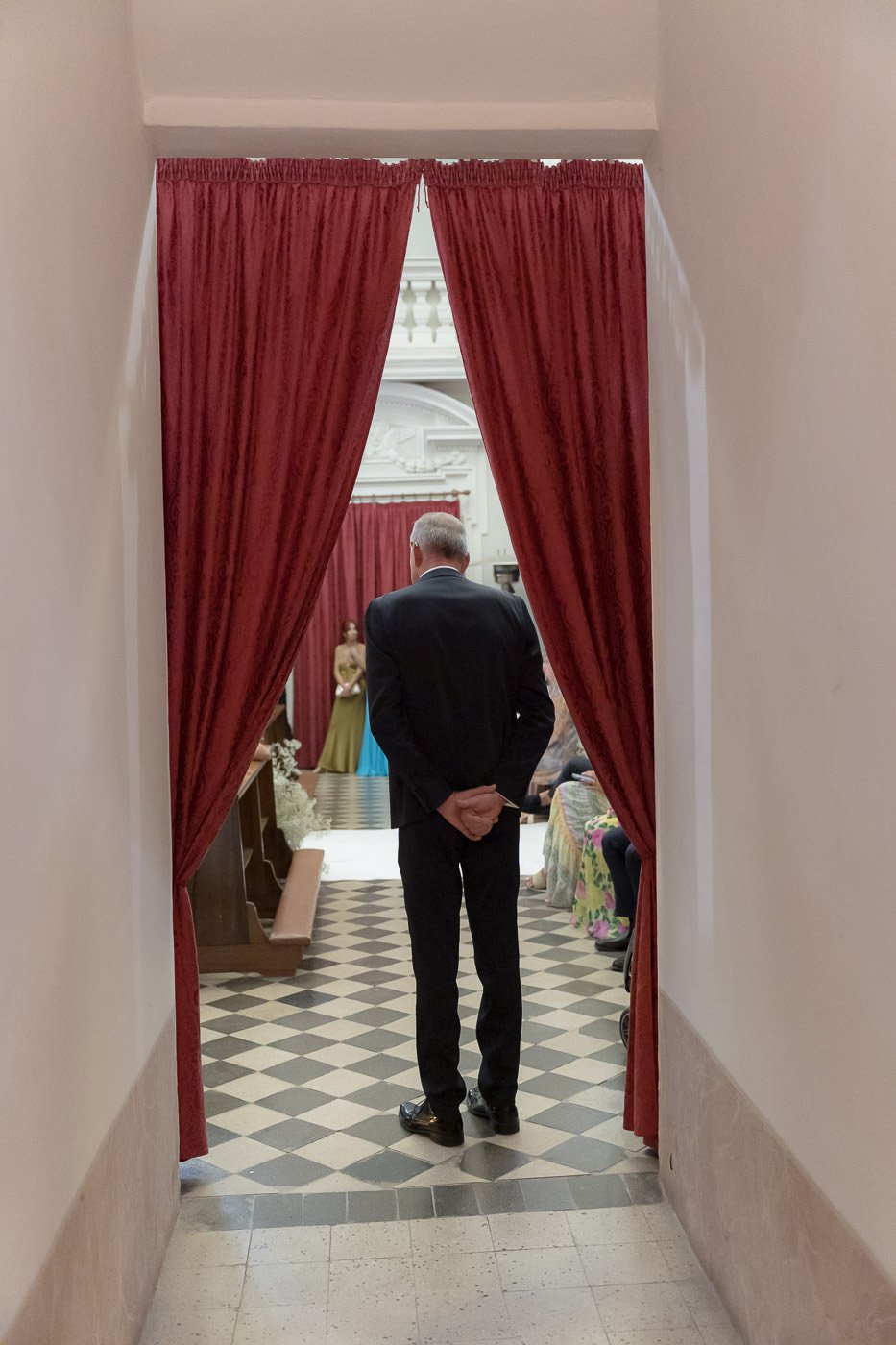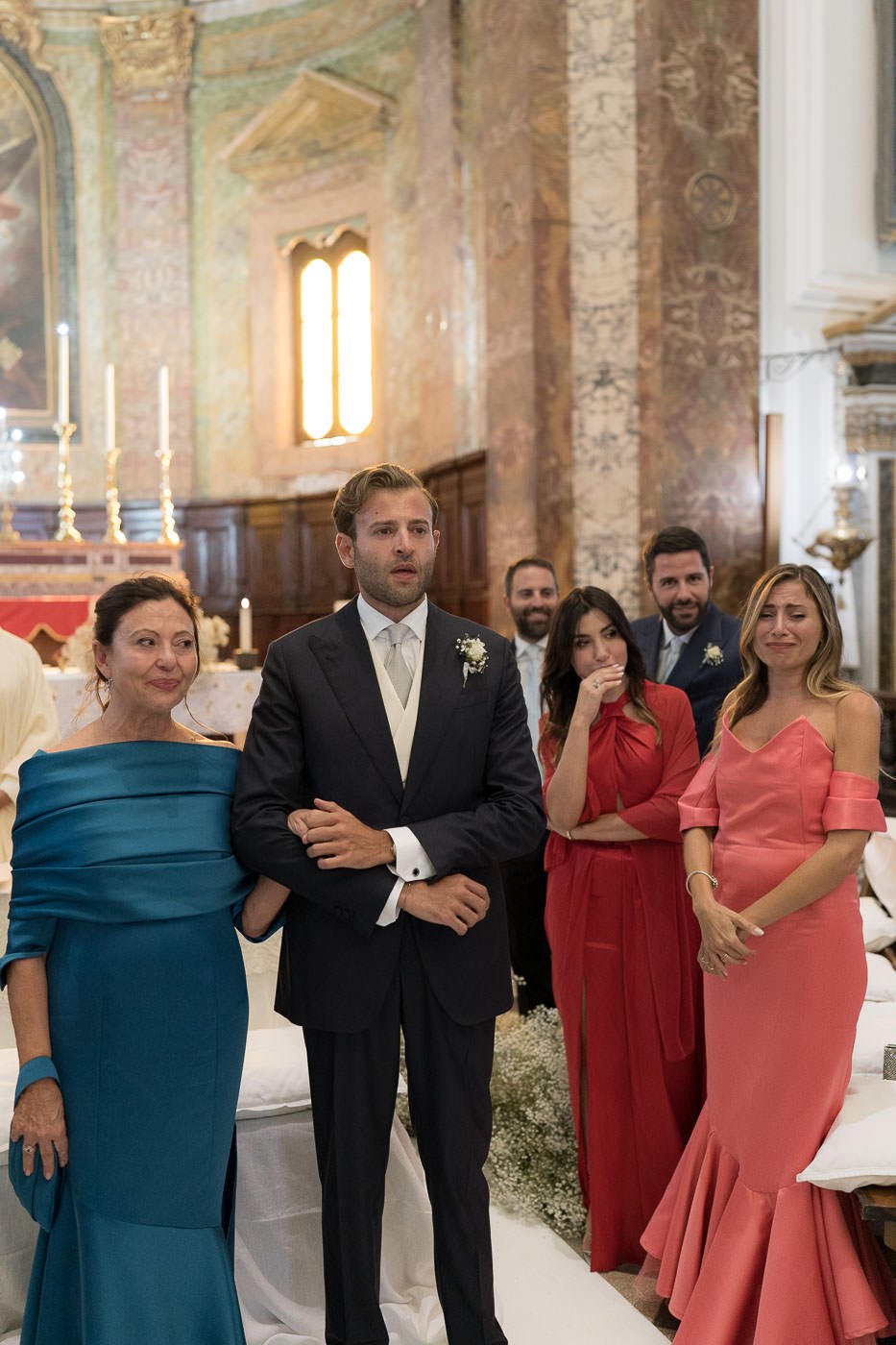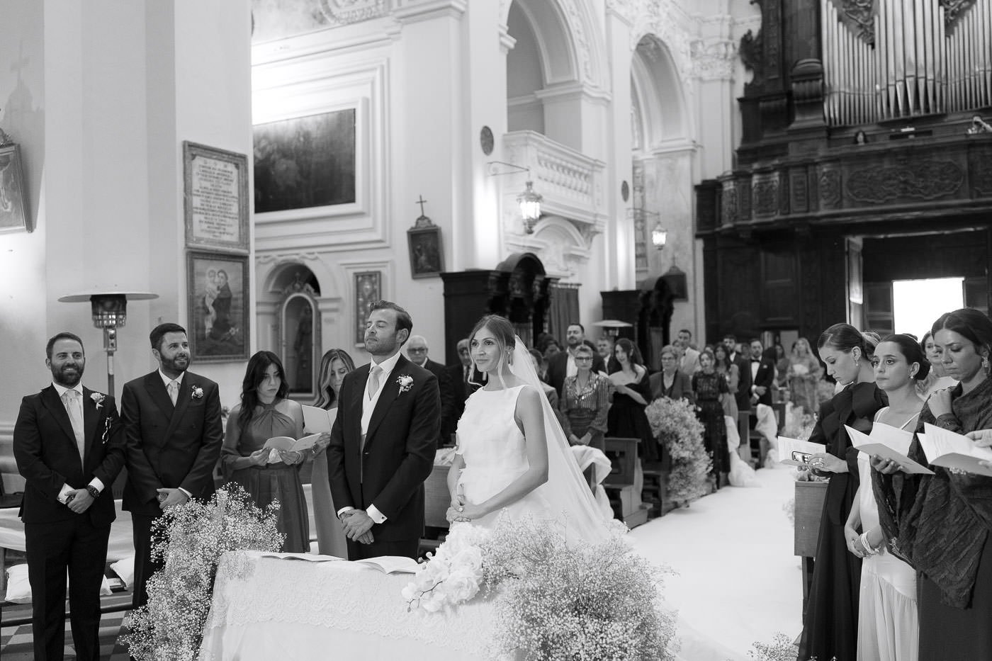 La mattina è iniziata con una cerimonia religiosa in una chiesa non lontana dall’abbazia. È stato un momento sincero e carico di emozione, vissuto insieme a parenti e amici pienamente presenti e partecipi. Si percepiva chiaramente quanto questo passo fosse importante per la coppia, e il supporto delle persone intorno a loro ha definito il tono dell’intera giornata.