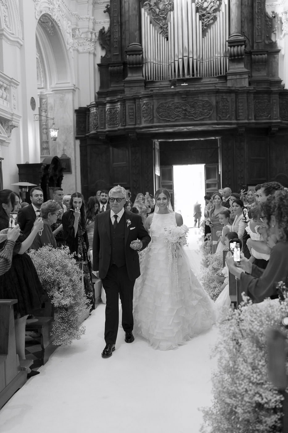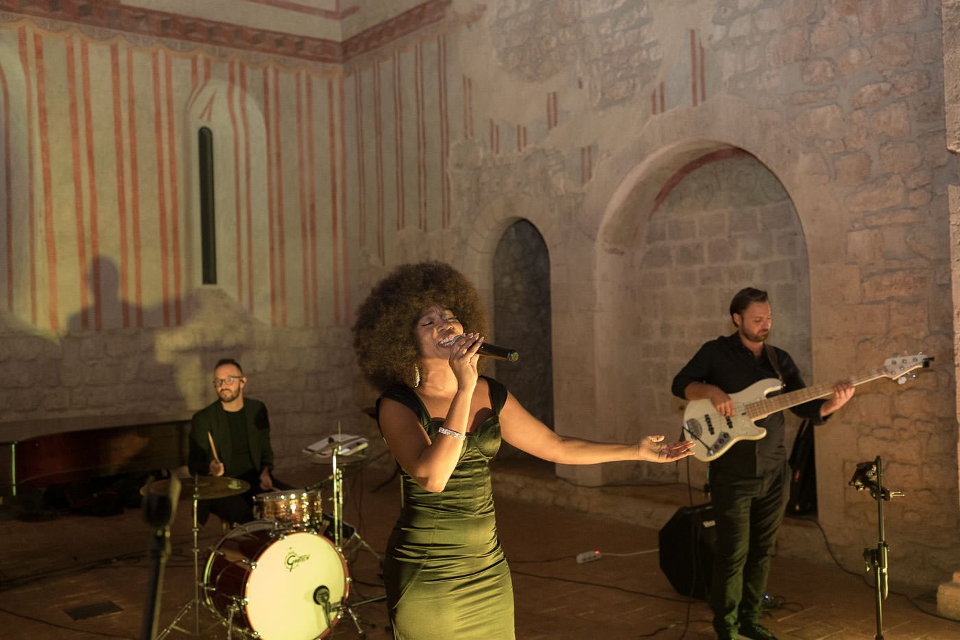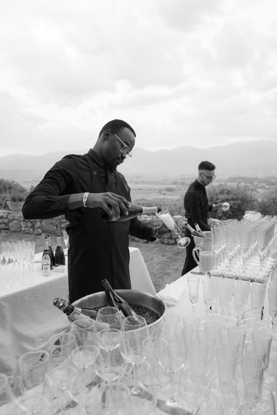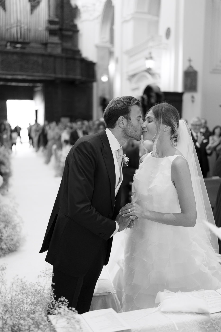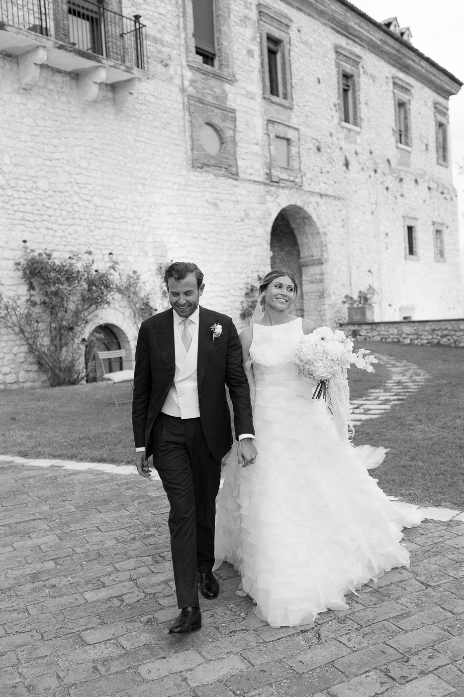 La mattina è iniziata con una cerimonia religiosa in una chiesa non lontana dall’abbazia. È stato un momento sincero e carico di emozione, vissuto insieme a parenti e amici pienamente presenti e partecipi. Si percepiva chiaramente quanto questo passo fosse importante per la coppia, e il supporto delle persone intorno a loro ha definito il tono dell’intera giornata.