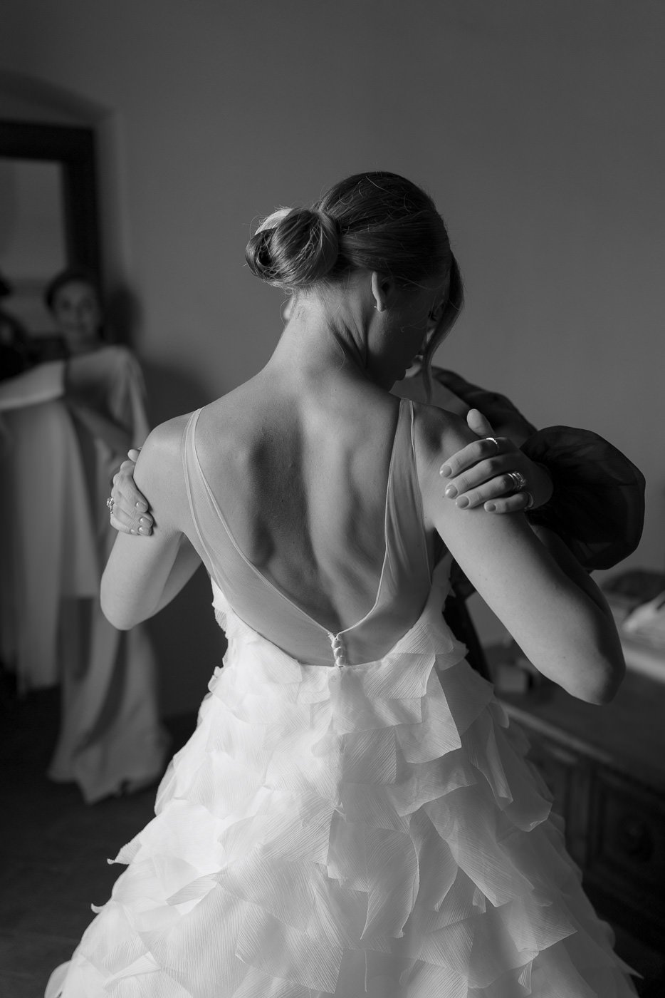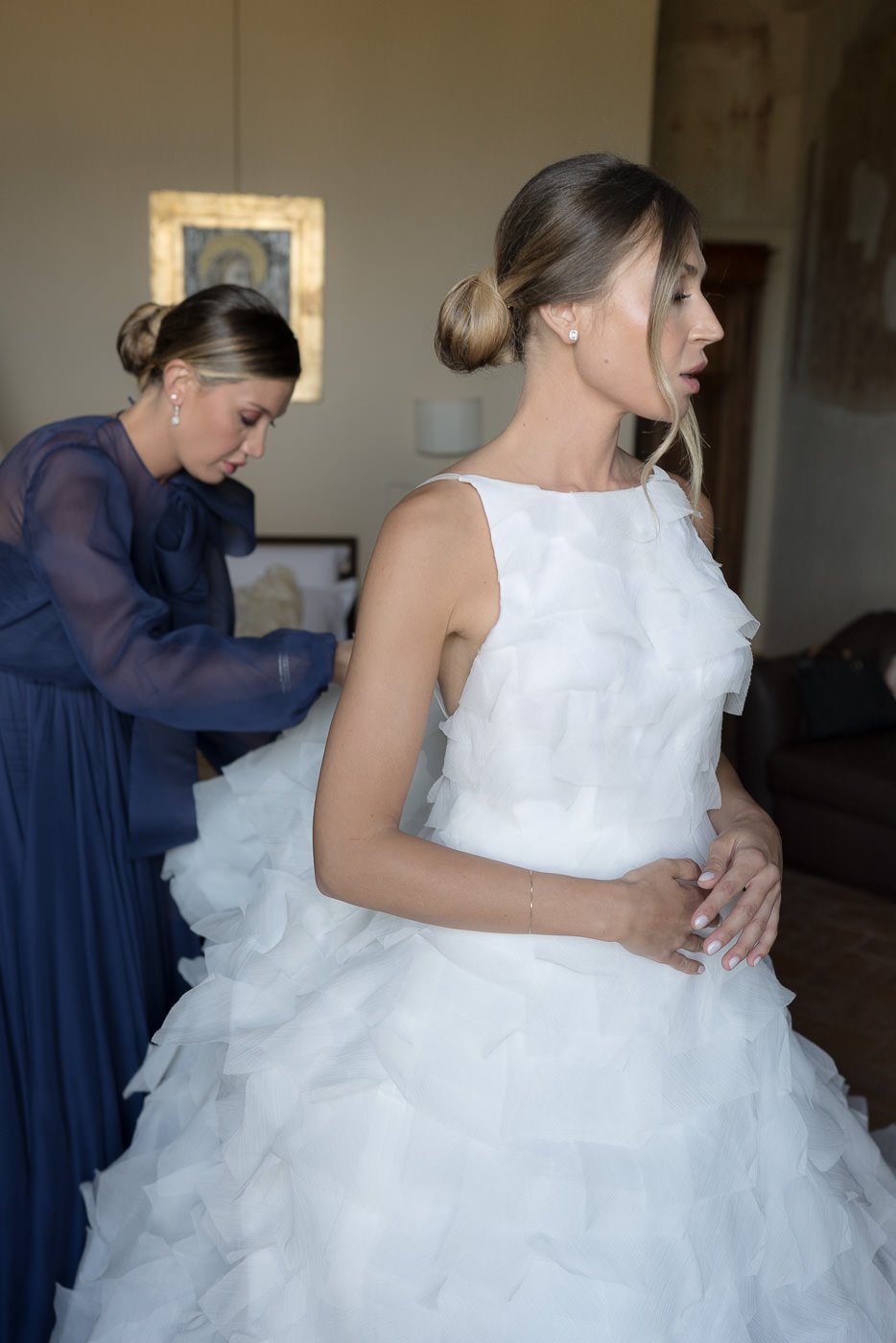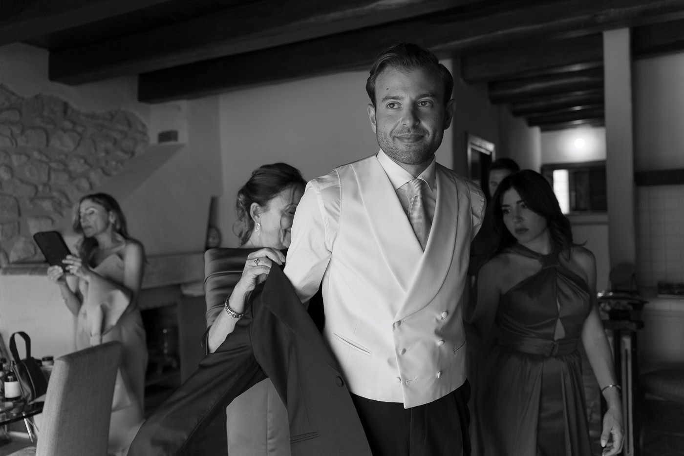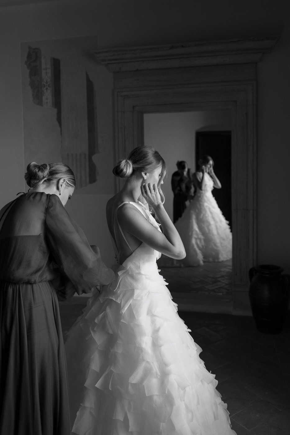 La mattina è iniziata con una cerimonia religiosa in una chiesa non lontana dall’abbazia. È stato un momento sincero e carico di emozione, vissuto insieme a parenti e amici pienamente presenti e partecipi. Si percepiva chiaramente quanto questo passo fosse importante per la coppia, e il supporto delle persone intorno a loro ha definito il tono dell’intera giornata.