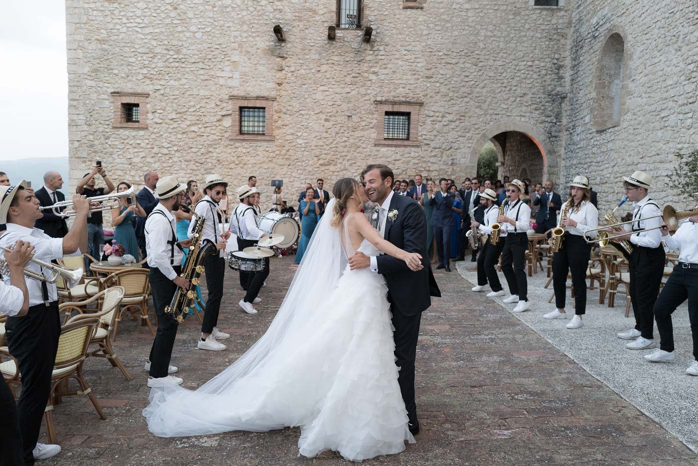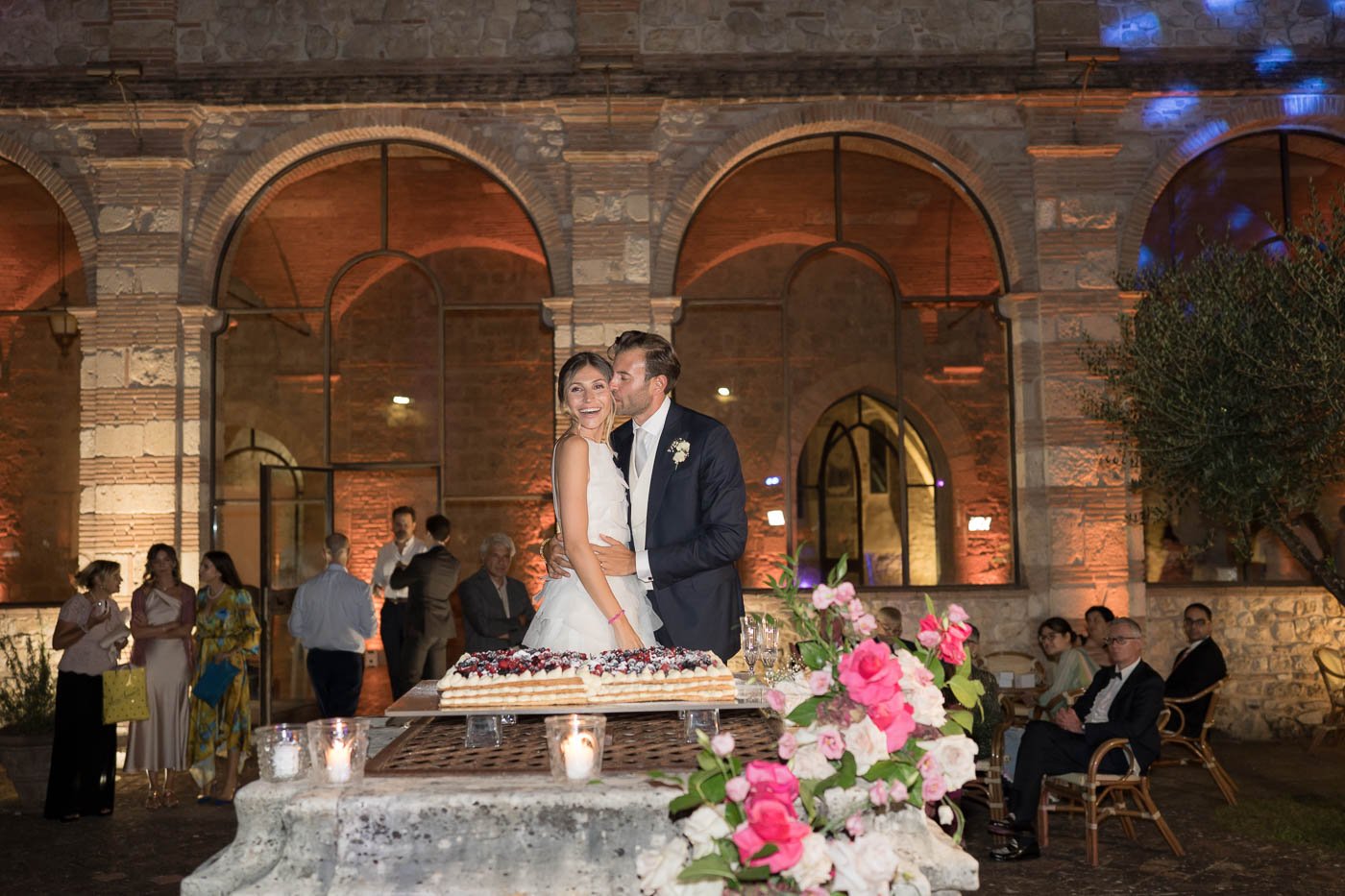 Dopo la cerimonia, tutti si sono spostati all’Abbazia di San Pastore per continuare i festeggiamenti. Questa location è molto apprezzata per chi sogna un matrimonio all’Abbazia di San Pastore, perché riesce a unire le persone in modo semplice e autentico. Gli ospiti hanno chiacchierato, riso e trascorso il tempo insieme senza fretta, creando un’atmosfera intima e rilassata, come se fossero un’unica grande famiglia.