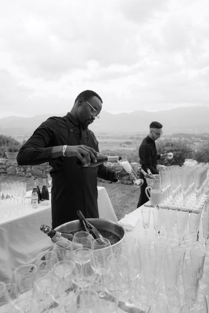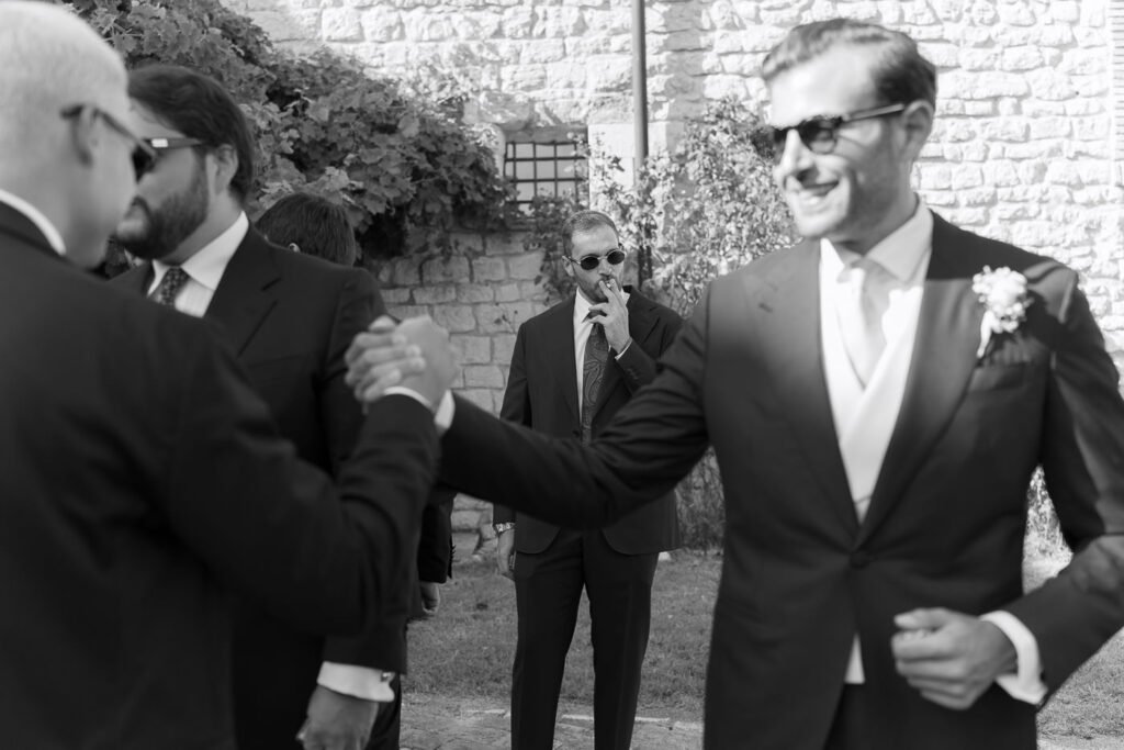 After the ceremony, everyone reached Abbazia di San Pastore for the continuation of the celebration. This location is well-known for weddings because it brings people together in a simple and genuine way. Guests talked, laughed, and enjoyed each other’s company without any rush — it truly felt like one big family.