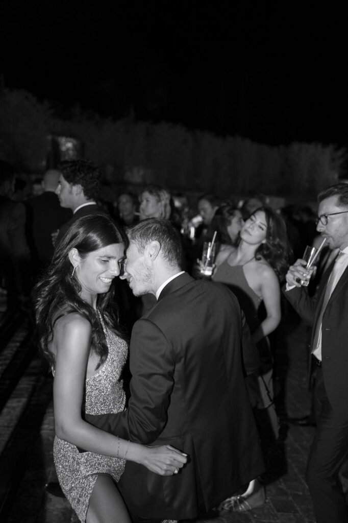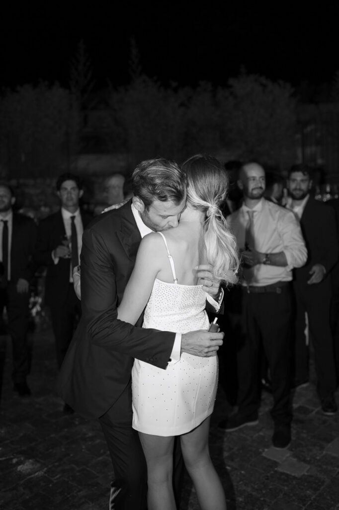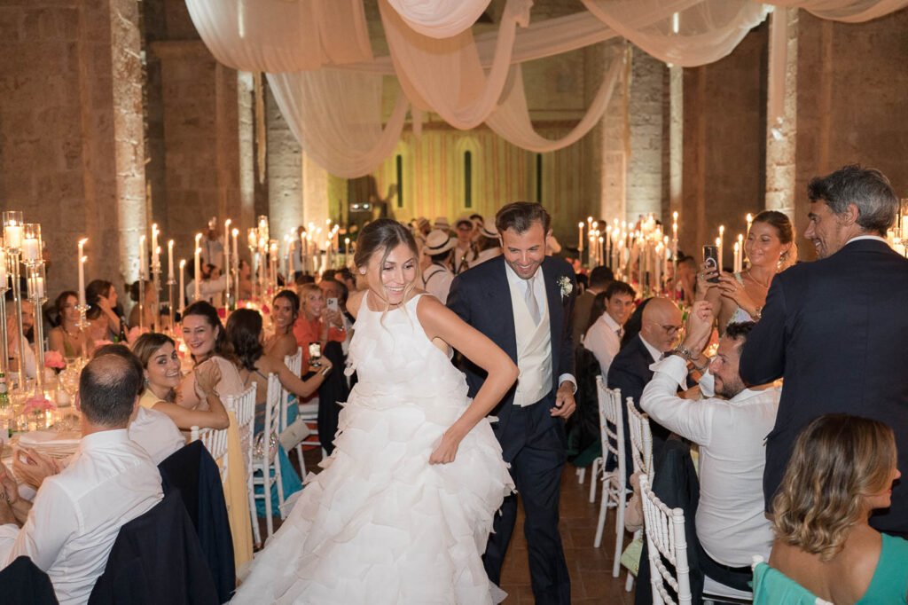 The evening continued with speeches, dancing, and many moments shared between Valentina, Stefano, and the people dearest to them. Their San Pastore Abbey Wedding ended with a lively celebration where everyone took part, showing once again how strong the bond was among the families and friends gathered there.